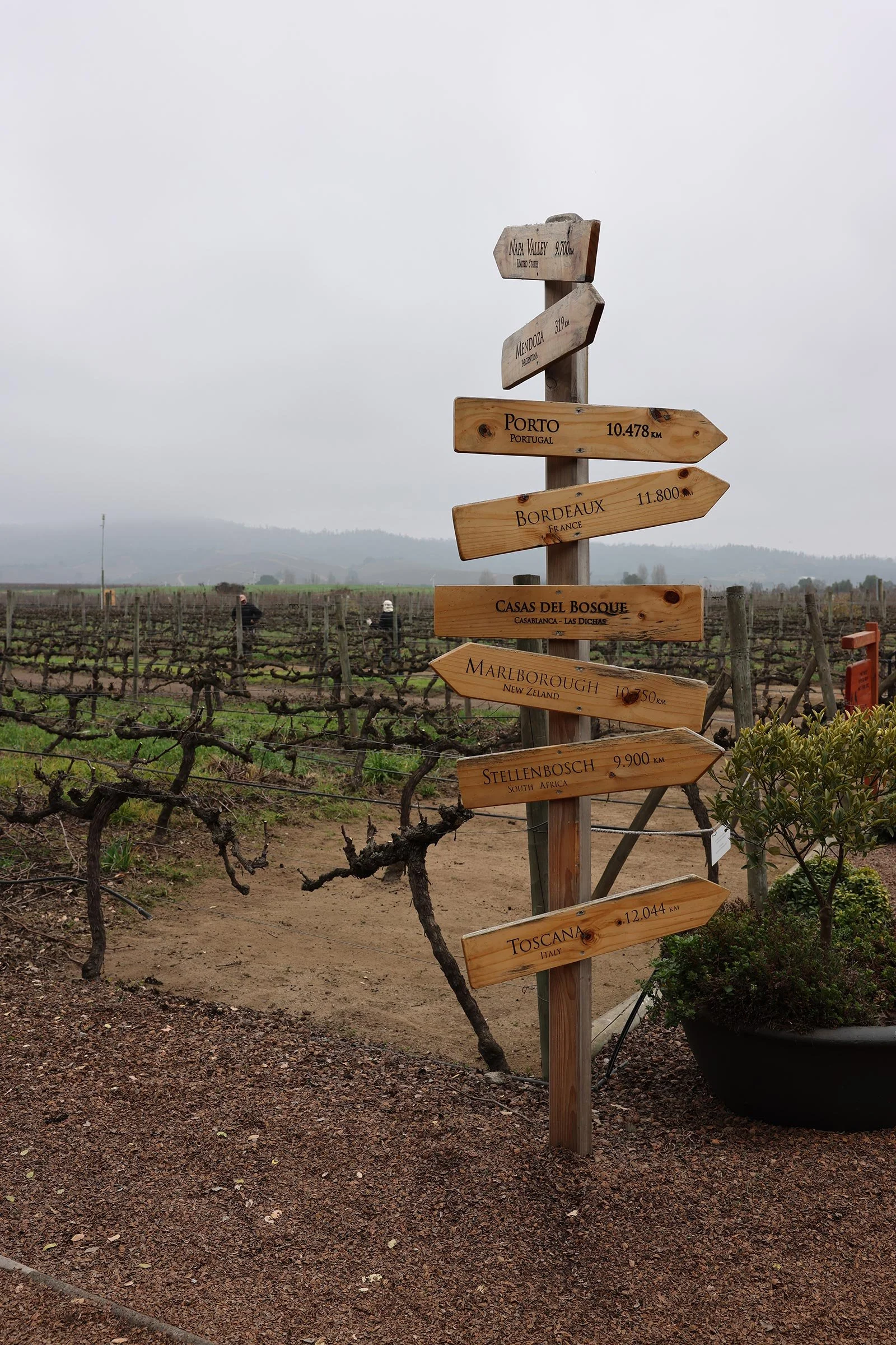 Vingården Viña Casas del Bosque ligger en dryg timme från Santiago, på vägen ut mot kusten. Eftersom Chile är känt för sina goda viner ville vi gärna besöka en vingård och Viña Casas del Bosque passade bra med sitt läge. Vi tog en Uber från hotellet i ett soligt Santiago, lämnade storstaden och omgavs snart av landsbygd och gröna kullar. På andra sidan en tunnel möttes vi plötsligt av en kompakt dimma som verkat fastna eftersom den inte orkat ta sig över berget. Från och med nu skulle resten av dagen vara mulen.