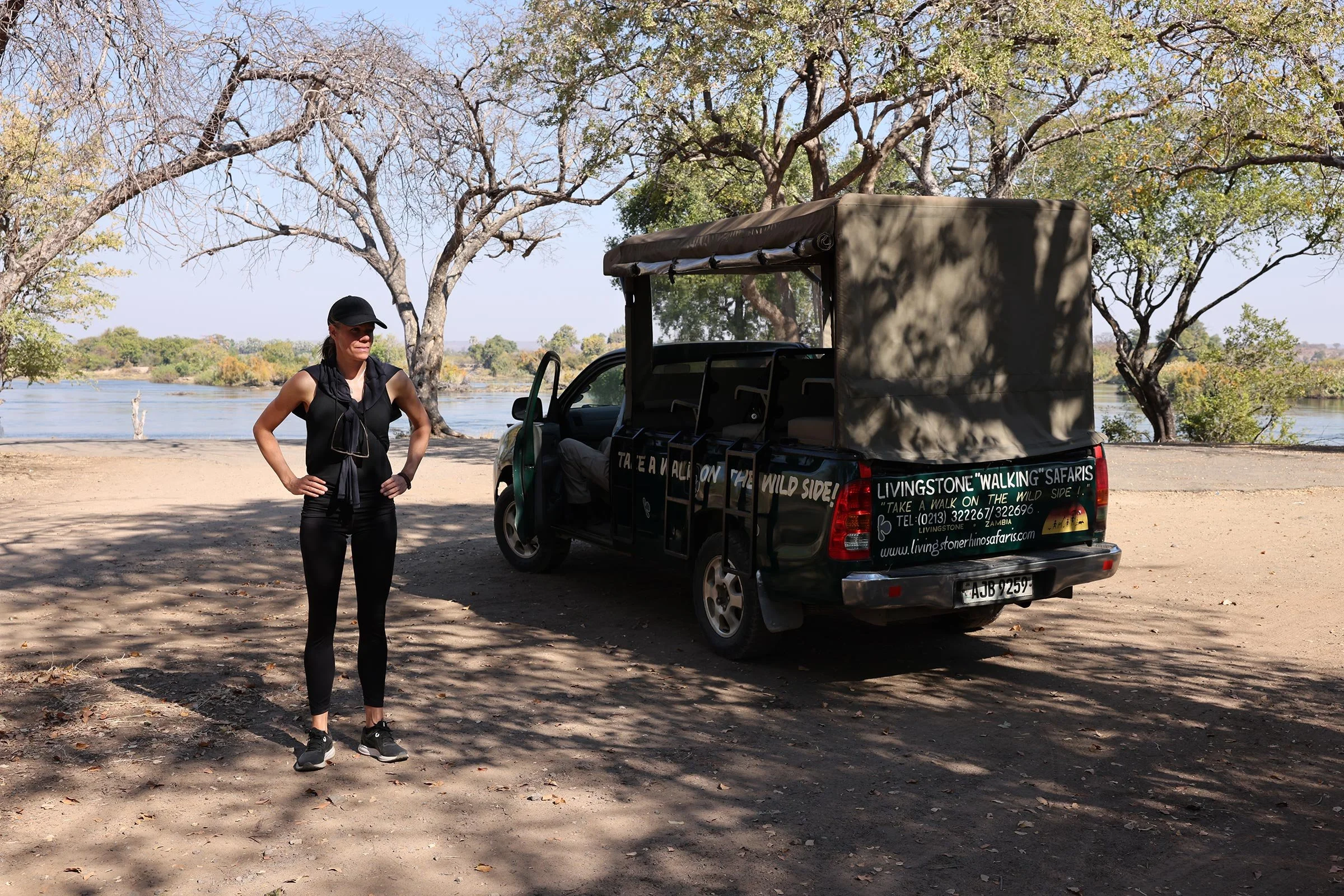 Jag och jeepen vi också åkte med när vi var på walking safari i Zambia